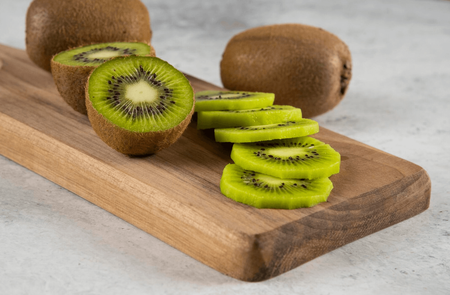 그린키위에는 수용성과 불용성 식이섬유가 적절한 비율로 들어 있어 변비를 예방하고 배변 활동을 원활하게 해줍니다. 수용성 식이섬유는 물에 잘 녹아 장에서 팽창해 위 속 음식을 감싸고 천천히 소화되도록 돕습니다. 불용성 식이섬유는 대변이 장을 빠르게 통과하게 해 변비를 예방해 줍니다. 미국 위장병 학회지에 게재된 연구에 따르면 그린키위를 꾸준히 섭취한 사람들은 배변 횟수가 주 1.5회 이상 증가했다고 해요. 변비로 고민하는 분들에게도 그린키위는 훌륭한 해결책이 될 수 있어요.