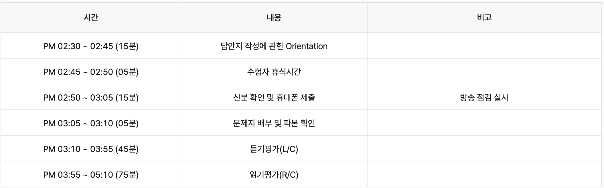 토익 시험은 입실 시간이 매우 엄격하게 관리됩니다. 정해진 시간 안에 입실하지 못하면 시험에 응시할 수 없으니 꼭 시간 관리를 철저히 하셔야 합니다.