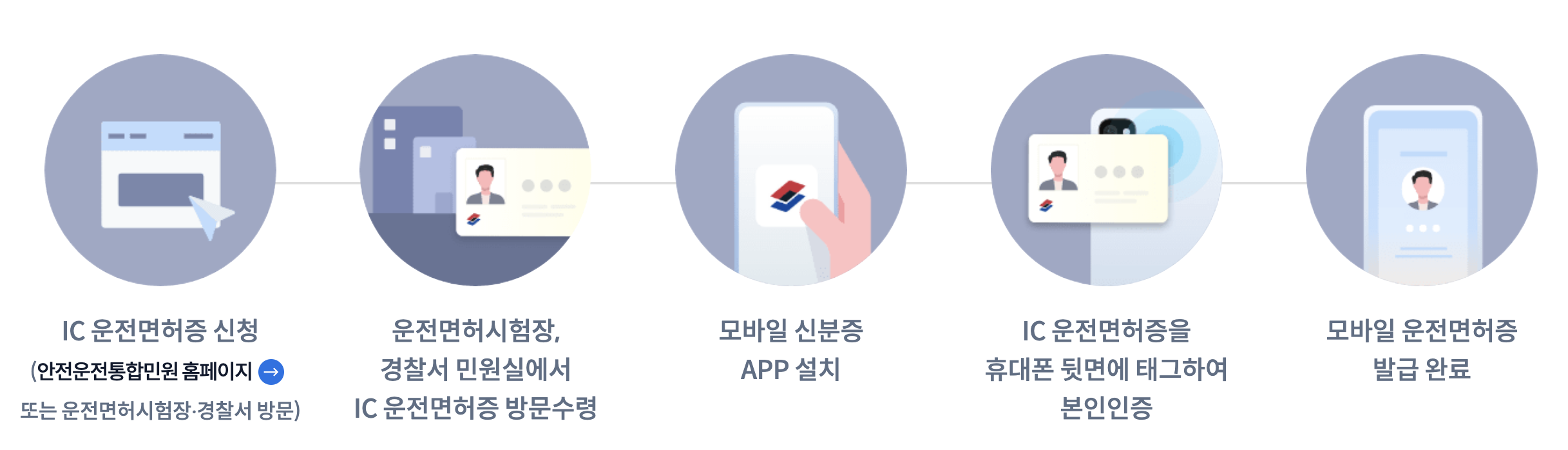혹시 면허증 갱신일이 가까워지고 있다면 IC 운전면허증을 신청하는 걸 추천드립니다. 그러면 운전면허시험장까지 가지 않아도 쉽게 모바일 면허증을 발급할 수 있거든요. 모바일 신분증 앱을 다운 받은 후 본인인증 절차를 거치고 면허증을 태그하면 끝이에요!
