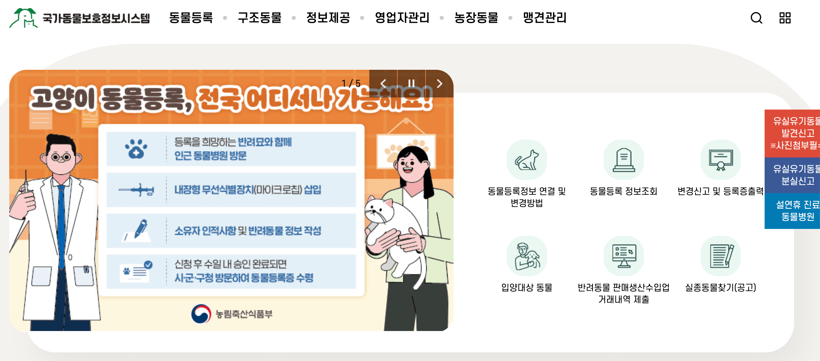 반려동물을 잃어버리면 먼저 국가동물보호정보시스템에 접속하세요.
