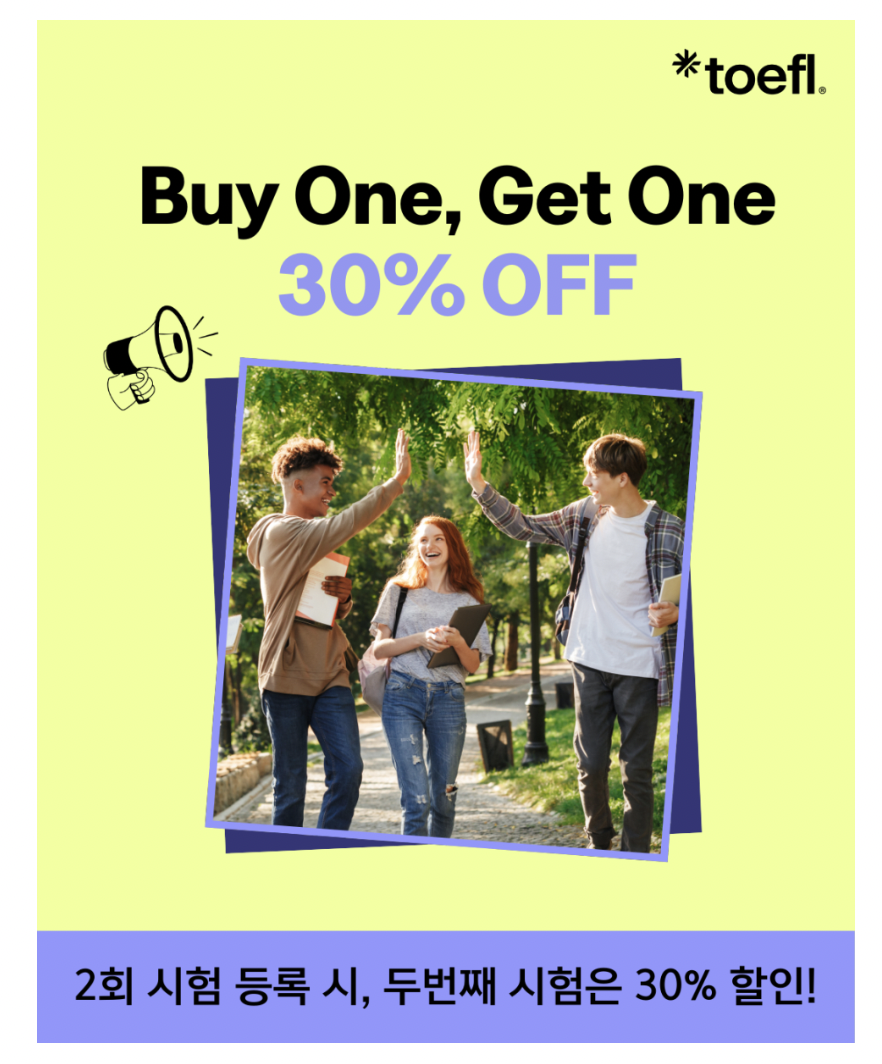 ETS TOFEL 공식 블로그에서는 각종 응시료 할인 또는 지원 이벤트가 업데이트 됩니다. 가장 최근인 2024년 7월에는 토플 60주년을 맞아 시험 2개를 접수할 경우 1개 시험의 응시료를 30% 할인해주는 이벤트를 진행했는데요.