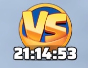 연맹대결은 오른쪽 메뉴 중 아래와 같이 생긴 'VS' 아이콘을 클릭하면 됩니다. 연맹대결은 특정 메인 퀘스트를 주제로 하루 단위로 진행되고 아이콘 아래에 남은 시간이 표시되어요.